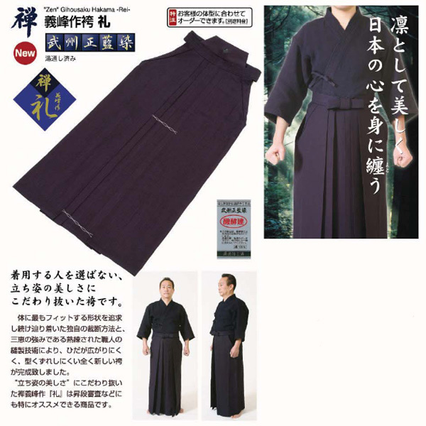 The Zen Gold Gihousaku Hakama Rei Silk is bushu Indigo Blue dyed and steam treated. The material is of a higher quality than the Zen Silver Gihousaku Hakama and the threading is high as well. This is Hakama and excellent for grading and presentation. This Hakama is mostly worn by Senior Dan holders and often attend Kendo seminars. The Hakama is also excellent for training.